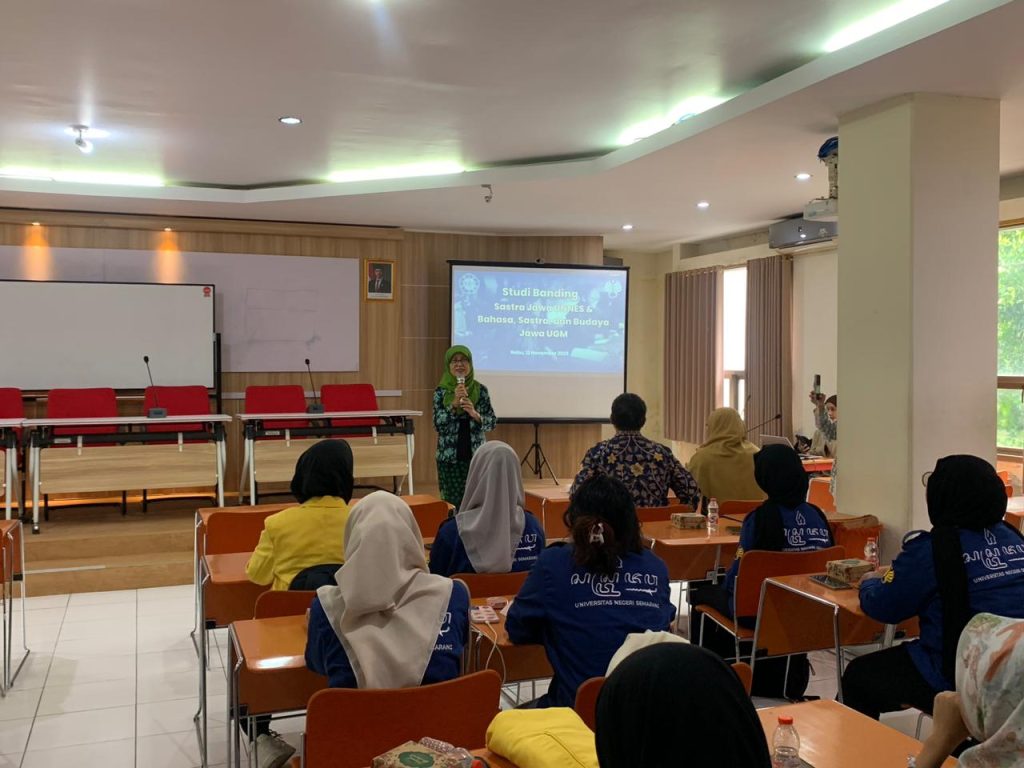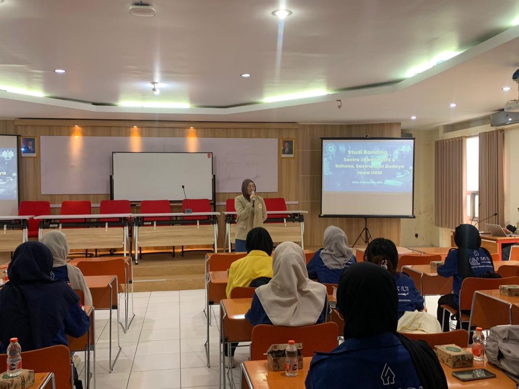 Yogyakarta, November 12, 2025 — The Javanese Literature Study Program, Semarang State University (UNNES), conducted a comparative study with the Javanese Language, Literature, and Culture Study Program, Gadjah Mada University (UGM). The event, held in the Multimedia Room on the 2nd floor of Margono Building, Faculty of Cultural Sciences (FIB) UGM, served as a platform for networking and knowledge exchange among students from both universities.