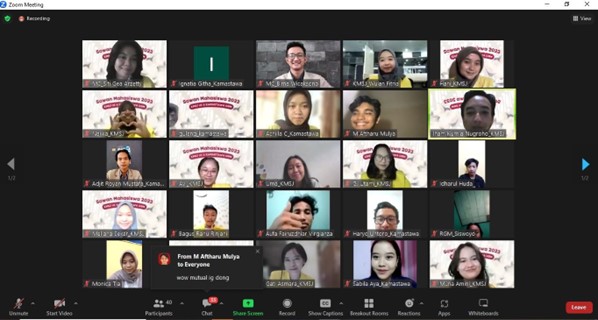 The 'Sowan Kadang' event between the Family of Javanese Literature Students, Javanese Literature Program, Faculty of Cultural Sciences, Universitas Indonesia (KMSJ FIB UI), and the Student Association of the Family of Javanese Literature Students, Javanese Language, Literature, and Culture Program, Universitas Gadjah Mada (HMJ KAMASTAWA UGM), was successfully held with warmth. This virtual benchmarking activity, conducted on July 15, 2023, aimed to strengthen the camaraderie and cooperation between these two Javanese literature student associations.
